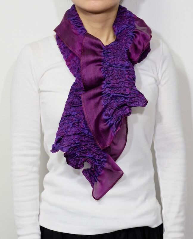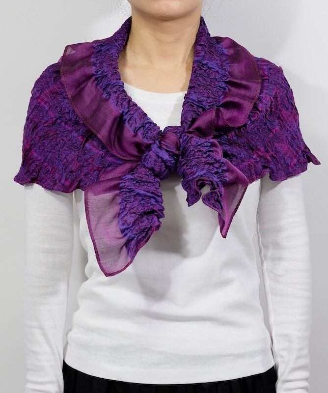 さらりと巻くだけで、着こなしのおしゃれ度を高めるフリル付きストール。
