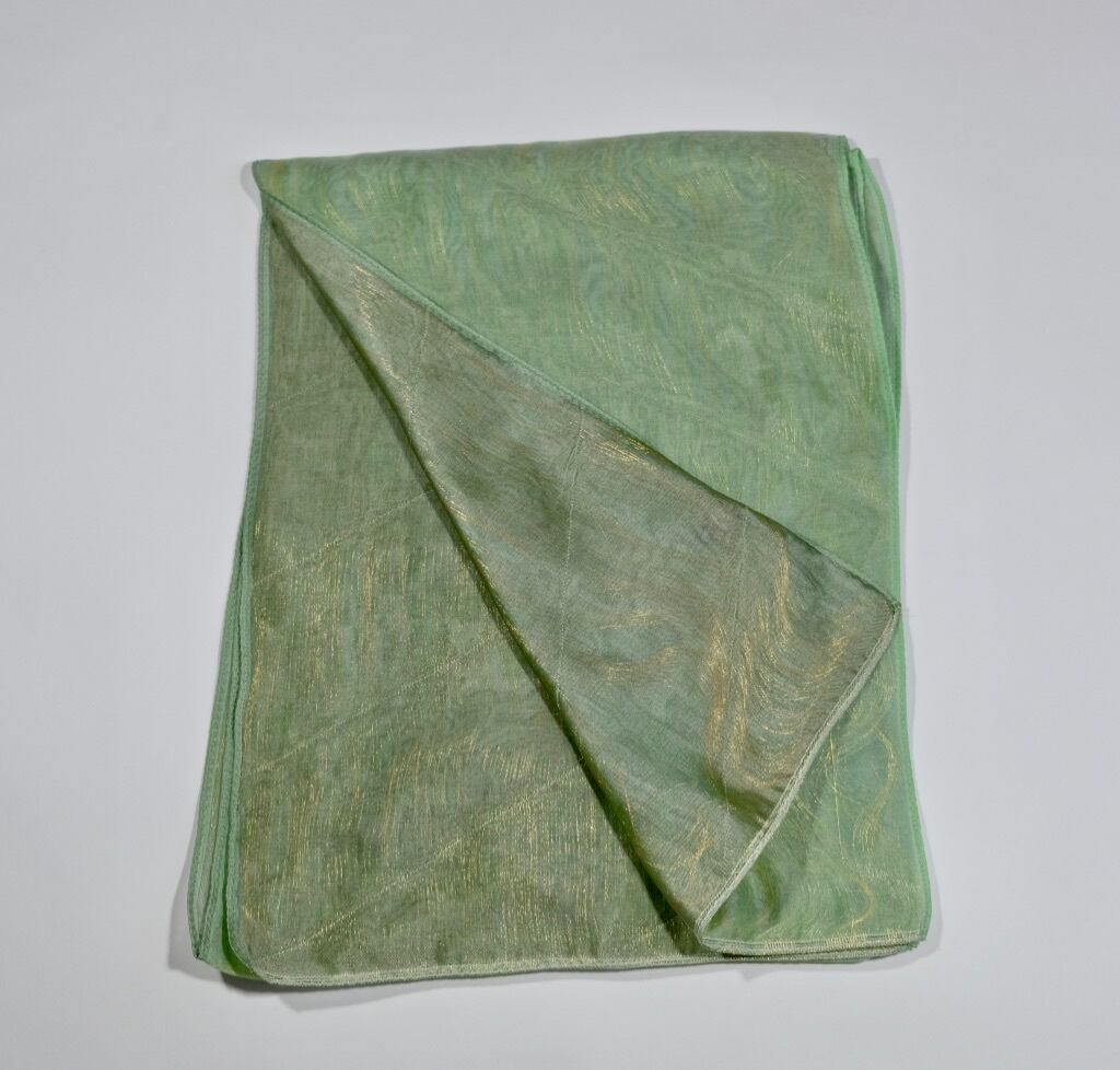 上下のシルクの間に金糸を通して織り上げたトリプル組織のストール。